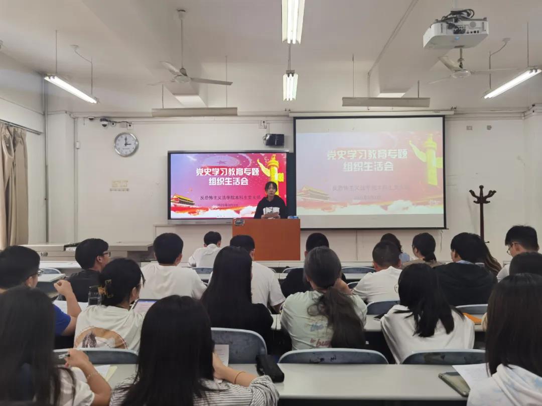 本次专题组织生活会由党支部书记王真老师主持,党委副书记侯颖怡老师,团委书记杨柳老师以及本科生全体预备党员参加。