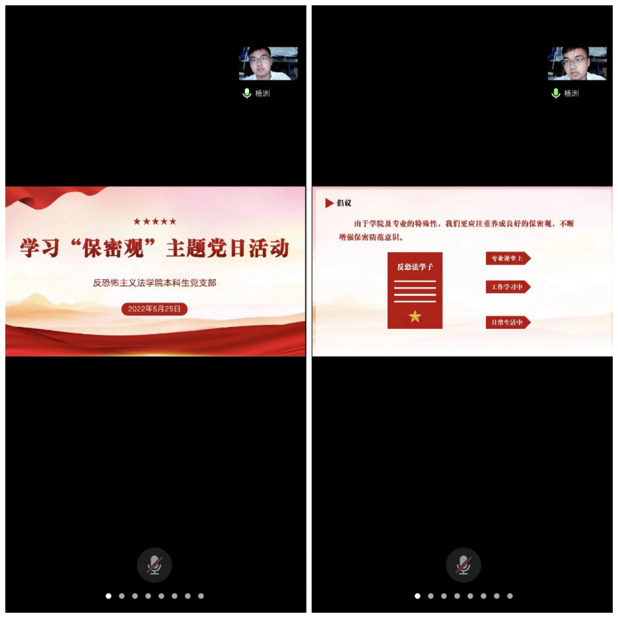 为认真贯彻落实新时代保密工作要求,进一步增强党员学生保密意识、保密能力,筑牢安全思想防线,5月25日,追影猫 本科生党支部通过腾讯会议组织开展学习“保密观”主题党日活动。活动由党支部成员杨洲主持,全体本科生党支部成员参加。