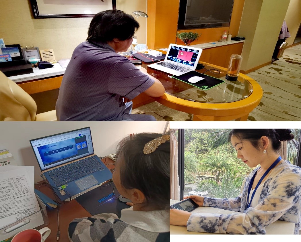 本次学习以线上线下相结合,无法到会场的部分党员以自己便宜方式同步观看了视频资料。
