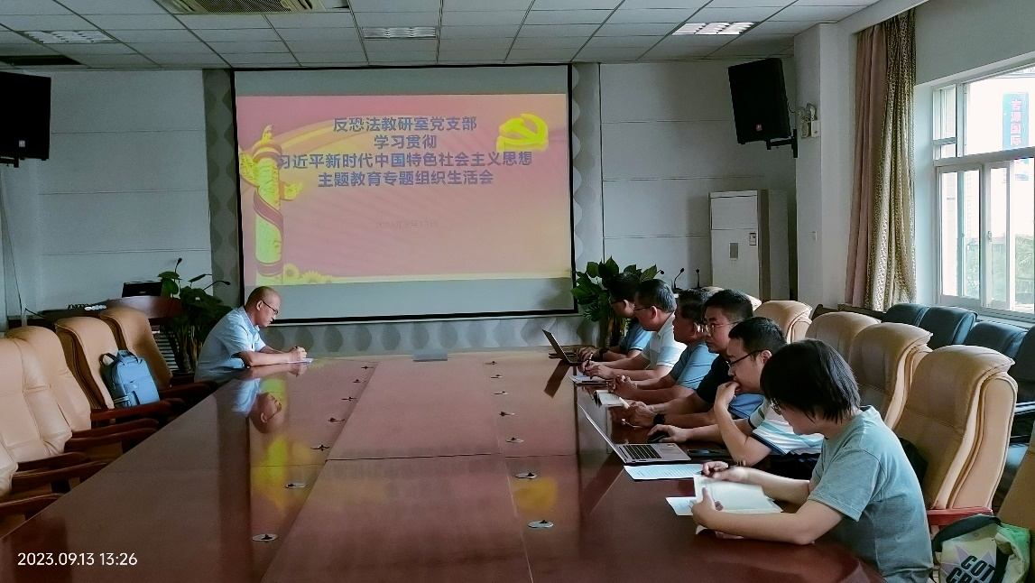 9月13日,追影猫 反恐怖主义法教研室党支部在学院会议室召开学习贯彻习近平新时代中国特色社会主义思想主题教育专题组织生活会,支部党员孙立江、乔巴生、齐立峰、刘伟、段阳伟、马瑜参加会议。会议由支部书记张波主持。