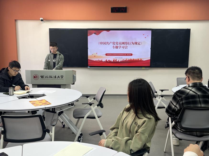 研究生第一党支部开展网络行为文明教育活动,支部全体党员到场参加。活动由组织委员尹瑞涛主持。