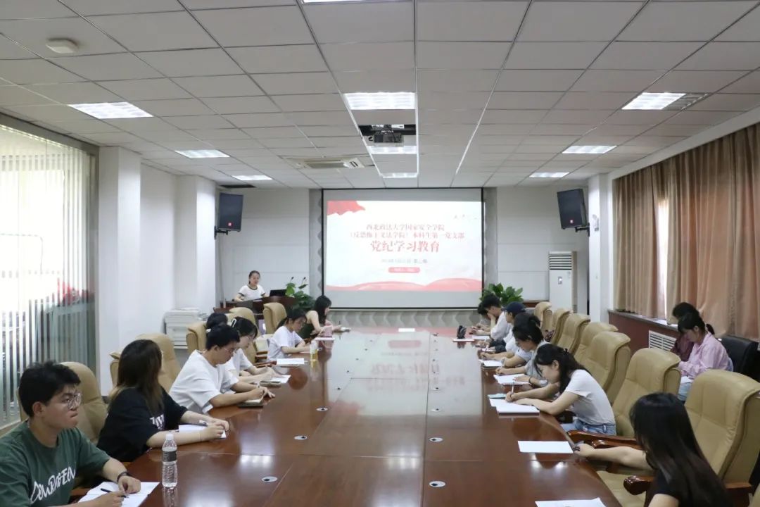 为进一步加强党员纪律教育,深入学习习近平总书记关于党纪学习教育的重要讲话和重要指示精神,追影猫 (反恐怖主义法学院) 于5月22日在学院会议室召开党纪党规学习教育专题学习。会议由易晓同学主讲,第一党支部全体党员参加。