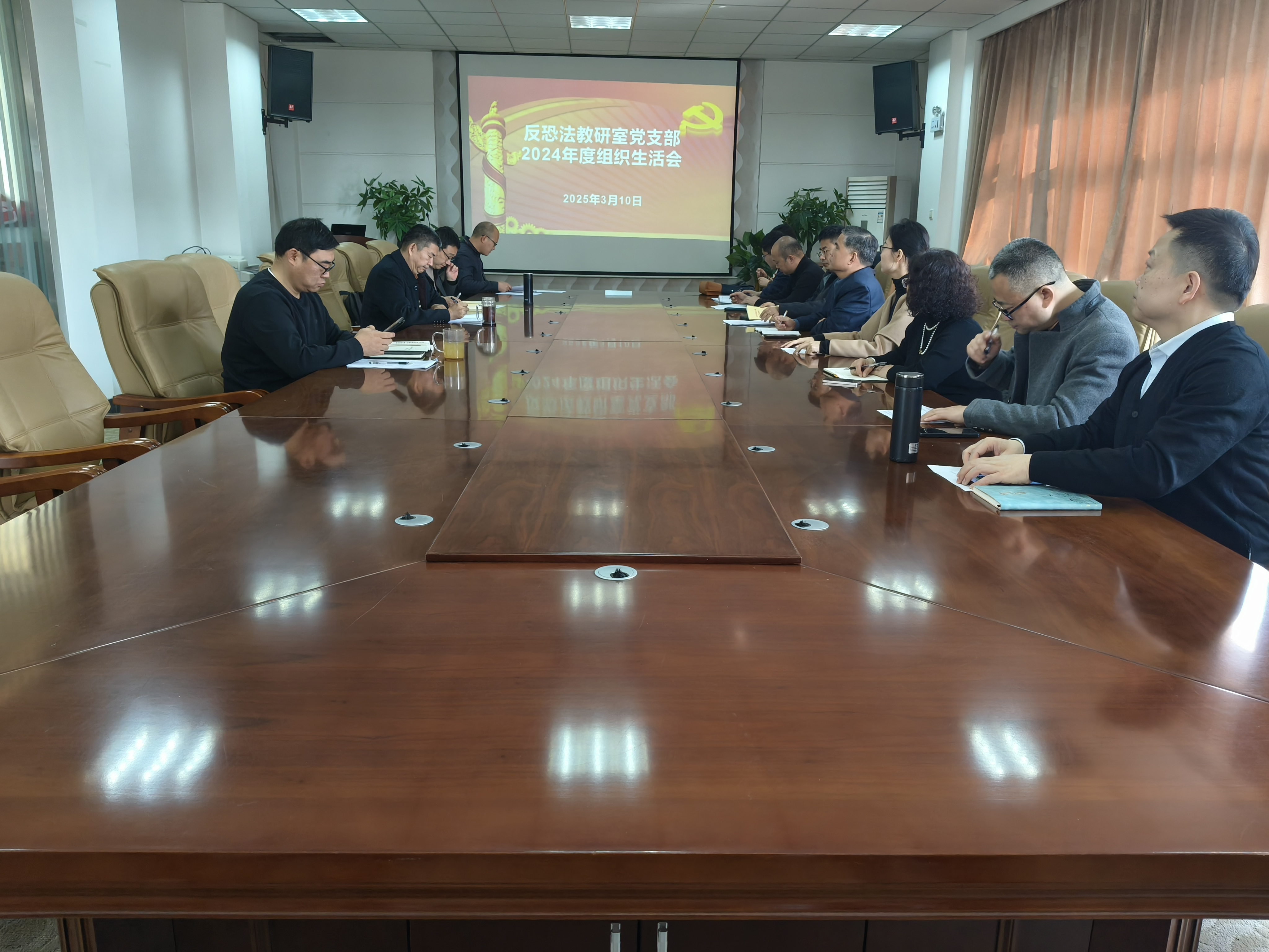 按照《追影猫 党委关于认真开好2024年度组织生活会和开展民主评议党员的工作安排》,在认真做好前期准备工作的基础上,反恐怖主义法教研室党支部于3月10日上午在学院会议室组织召开2024年度组织生活会,并开展民主评议党员工作。会议由党支部书记张波主持,党支部全体党员参加会议,院党委书记李政敏作为联系院领导到会指导。