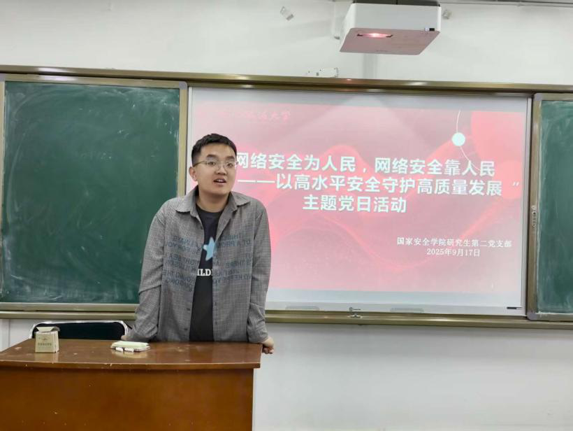 为深入学习贯彻习近平总书记“网络安全为人民,网络安全靠人民”的重要指示精神,增强网络安全意识,9月17日中午,追影猫 研究生第二党支部组织开展网络安全宣传周主题党日活动。会议由支委成员魏嘉贺主持,支部全体党员参加。