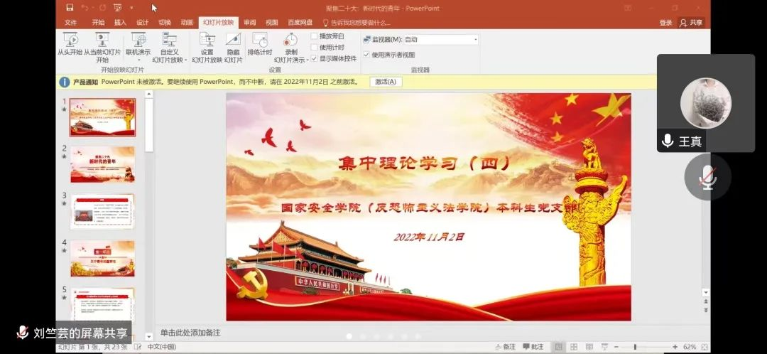 2022年10月16日,中国共产党第二十次全国代表大会隆重开幕。为了深入学习党的二十大精神,11月2日追影猫 本科生党支部组织第四次线上集中理论学习。