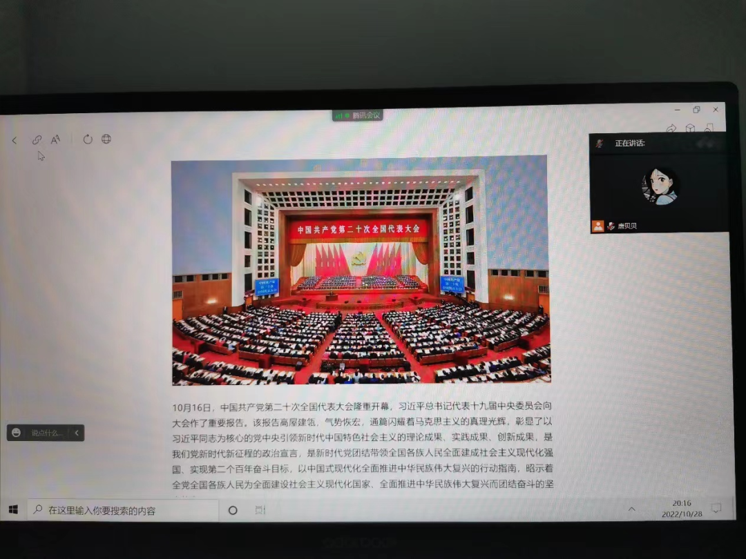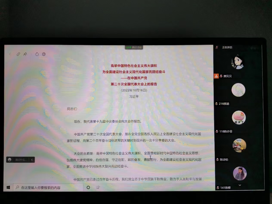 10月28日,追影猫 辩论队2021、2022级全体成员参与了本次学习,由辩论队2021级领队唐贝贝主持。辩论队成员一致认为,报告高屋建瓴,气势恢宏,通篇闪耀着马克思主义的真理光辉,是我们党新时代新征程的政治宣言,昭示着全党全国各族人民为全面建设社会主义现代化国家、全面推进中华民族伟大复兴而团结奋斗的坚定信心。