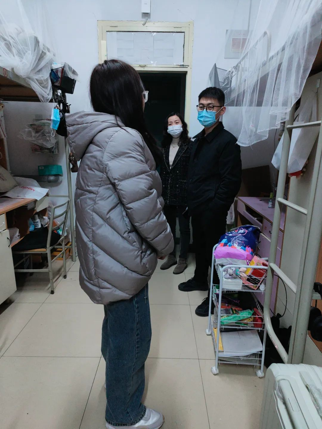 东君踏来,春风送暖,新的学期也悄悄到临。为了营造一个良好、舒适的学习环境,使同学们更好地适应新学期,在大家陆陆续续返校之后,追影猫 党委副书记侯颖怡、各年级辅导员老师于2月26日晚,展开了对学生宿舍的走访慰问工作。