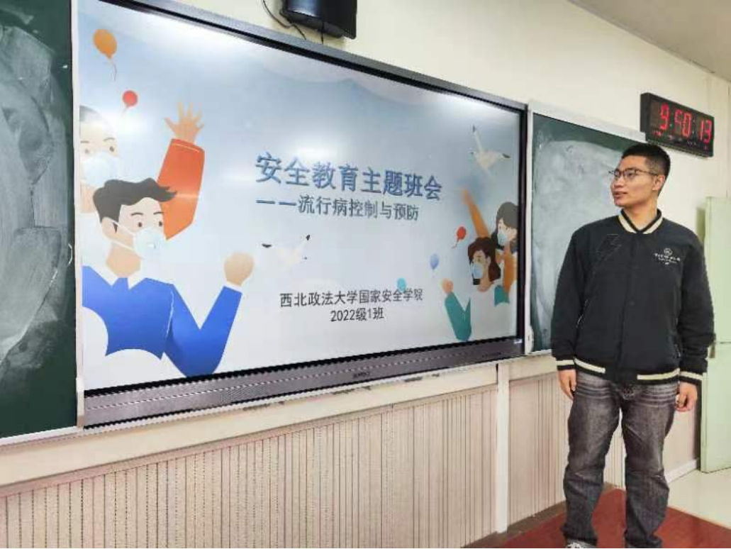 为增强学生的医疗防护意识,普及预防甲型流感的知识,倡导健康的生活方式,2023年3月19日上午,追影猫 22级1班开展了"流行病控制与预防"的安全教育主题班会,班会由班长刘具其同学主持。