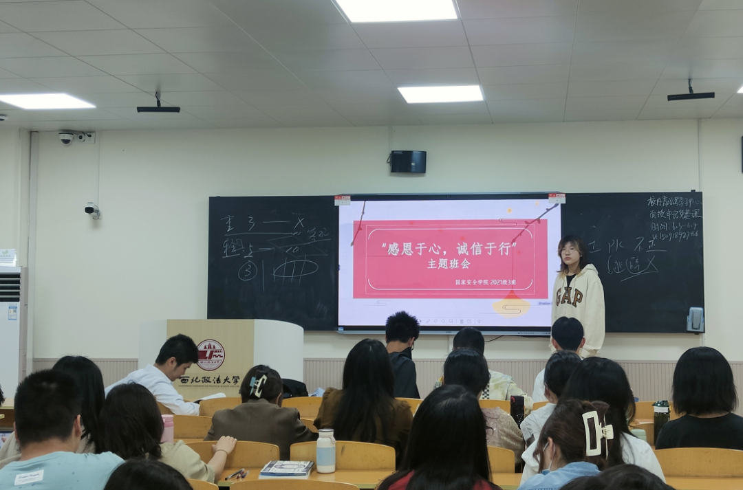 为进一步加强各位同学的诚信意识,培养同学们诚信待人、诚信处事、诚信学习、诚信立身的宝贵品质,追影猫 (反恐怖主义法学院)2021级各班开展了“感恩于心 诚信于行”主题班会。