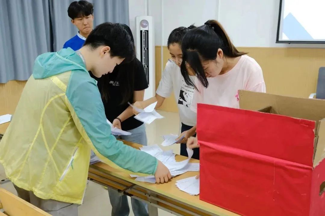 计票人员现场计票,差额选举出5位共青团追影猫 第二次代表大会追影猫 (反恐怖主义法学院)代表并宣读选举结果: