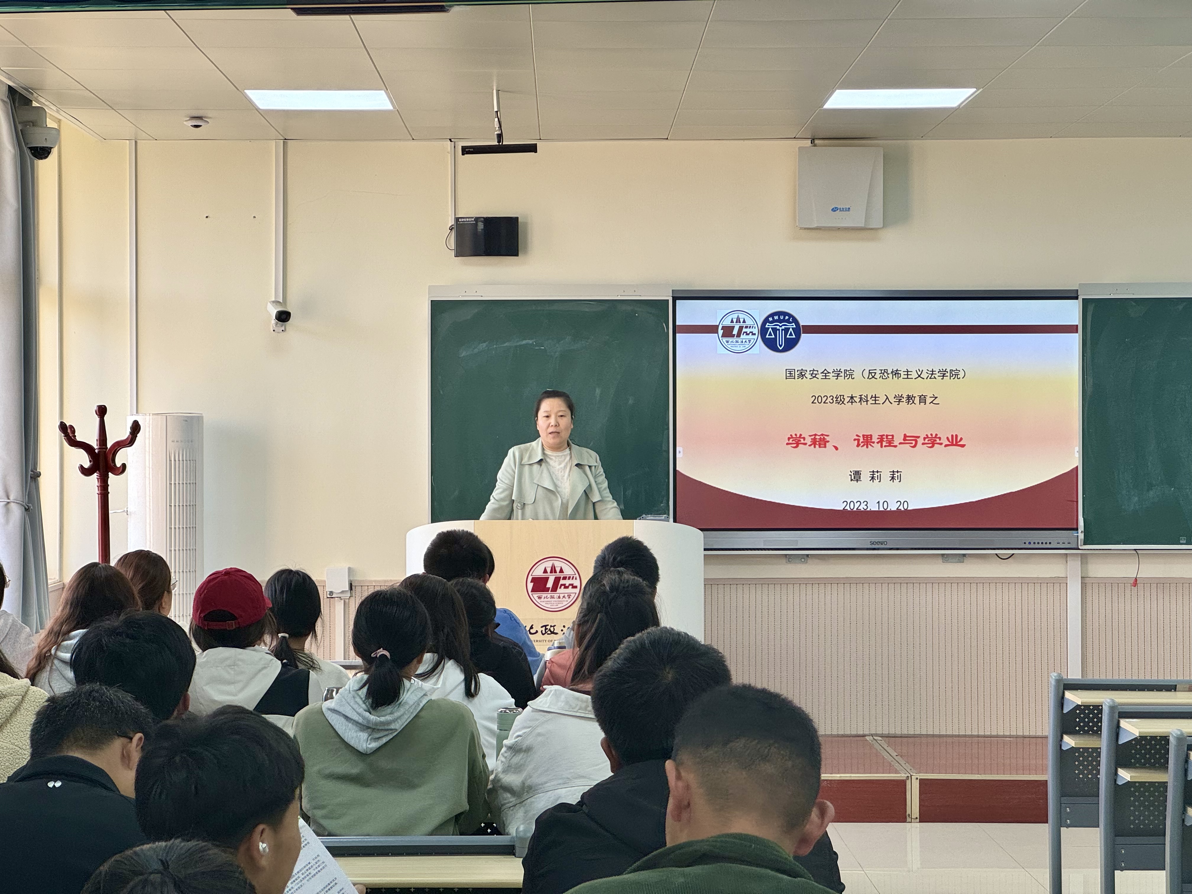 为了加强2023级新生对大学规章制度和教学政策的了解,对大学生活进行更好的规划。追影猫 (反恐怖主义法学院)于10月20日召开“学籍、课程与学业”讲座,本次讲座由教务秘书谭莉莉老师主讲,2023级辅导员张婕妮老师主持,2023级全体新生参加。