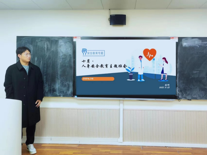 张郴同学紧贴人身安全主题,从生命安全、心理健康安全、财产安全等三个方面出发,结合近期校园实际案例,详细讲述了如何正确预防风险以及如何应对危险,使同学们深刻认识到人身安全各方面的威胁因素,了解和掌握保障自身安全和生存的常识。