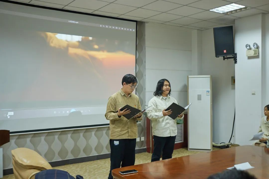红色基因涵养家国情怀,传承红色基因是我们当代青年义不容辞的责任。为了让同学们积极阅读红色经典著作,感悟革命先辈的昂扬斗志,铭记中国革命的光辉历程,更加深入地了解红色文化,增强民族自豪感和自信心,11月20日晚,追影猫 红色经典读书会与红色文化宣讲协会共同举办“读红色经典,诵伟大中华”读书节活动。活动由2022级周紫嫣同学主持,王真老师、张婕妮老师及各年级同学参加。