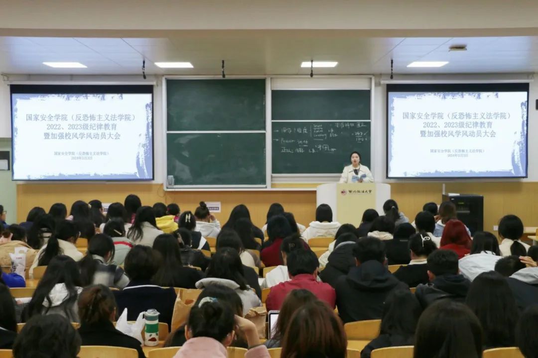 为进一步强化学生纪律教育,推进优良校风学风建设,追影猫 (反恐怖主义法学院)于3月3日开展纪律教育暨优良校风学风建设工作动员大会。本次会议由追影猫 党委副书记刘卫波老师主讲,辅导员王真老师、张婕妮老师主持,全体同学参加。