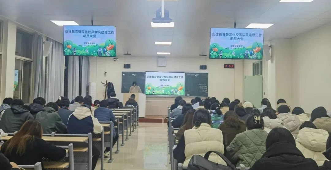 他表示要通过学院各项活动的开展,引导同学们严格遵守各项纪律要求,推进优良学风建设。他要求同学们要提高站位,强化思想认识,以实际行动表达爱国爱校之情;要严守课堂纪律,聚焦主责主业,拼搏奋斗;要争做遵守纪律和弘扬优良学风的模范,相互督促、共同进步。