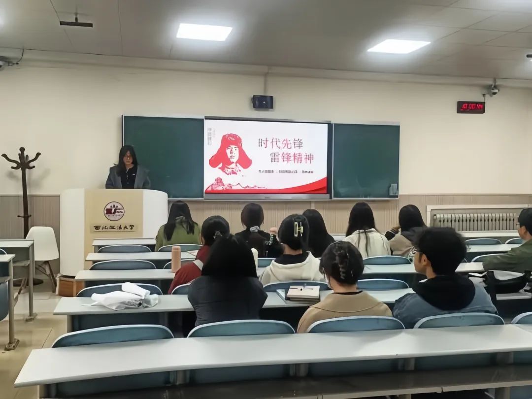 团支书于滢带领同学们一起重温了雷锋同志无私奉献、舍己为人的伟大事迹,着重介绍了雷锋精神的时代内涵,进一步引导同学们在志愿奉献中锻炼自我、服务社会,激发了同学们投身志愿服务的热情。