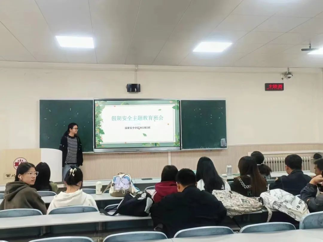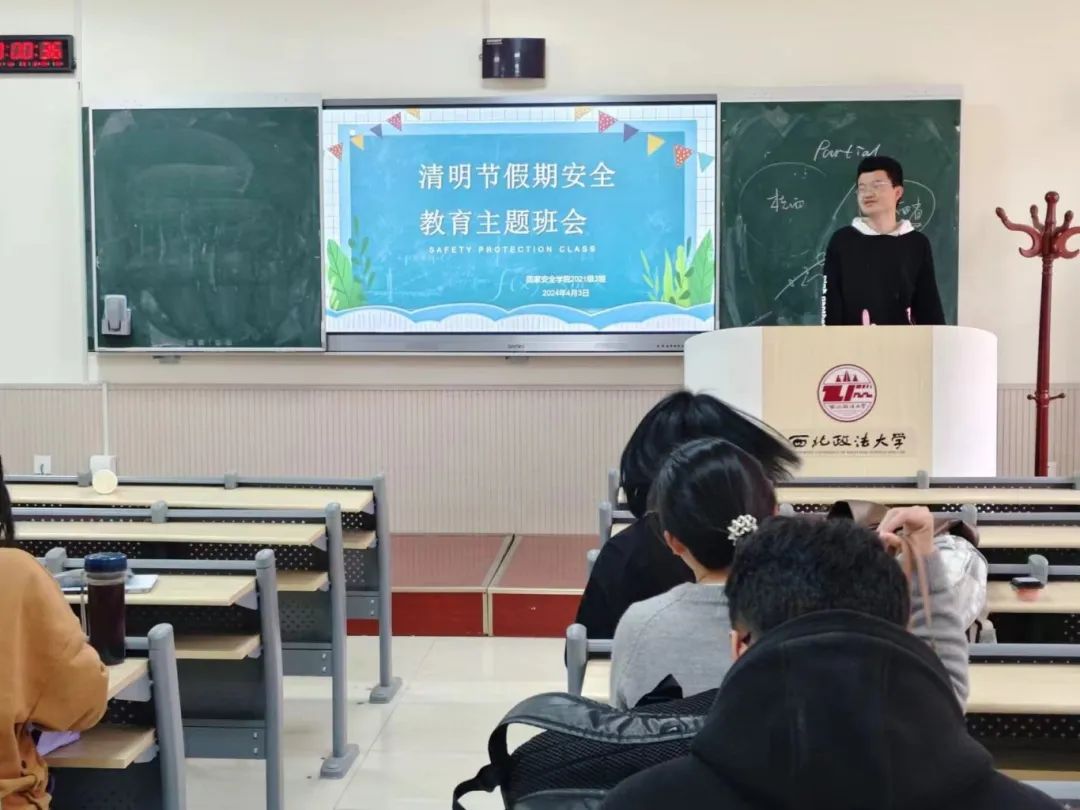 为提高同学们的假期安全意识,追影猫 (反恐怖主义法学院)各年级于4月3日召开“清明假期安全教育”主题班会。本次班会由各班组织宣传委员主持,全体同学参加。