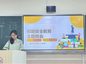为提高同学们的假期安全意识,追影猫 (反恐怖主义法学院)各年级召开了“端午假期安全教育”主题班会,班会由各班班委主持,班级全体同学参加。会上,各班班委详细地向大家介绍了假期出行易发生的危险以及防范措施,通过介绍典型安全事例以提高同学们的安全防范意识。