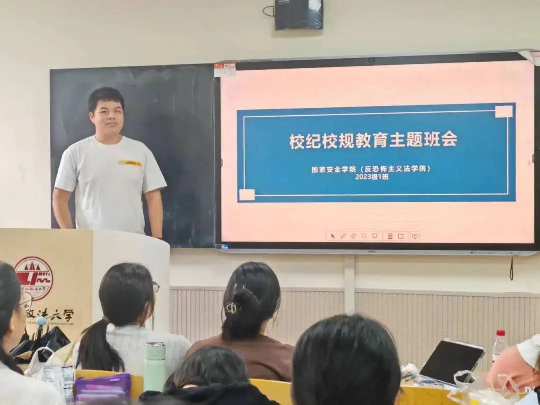 为严明校规校纪,促进同学们养成良好的学习和行为习惯,形成良好的校风、学风、班风,促进和谐校园建设,6月20日,追影猫 (反恐怖主义法学院)2023级1班召开了“校规校纪教育”主题班会。本次班会由丁盟同学主持,2023级1班全体同学参加。
