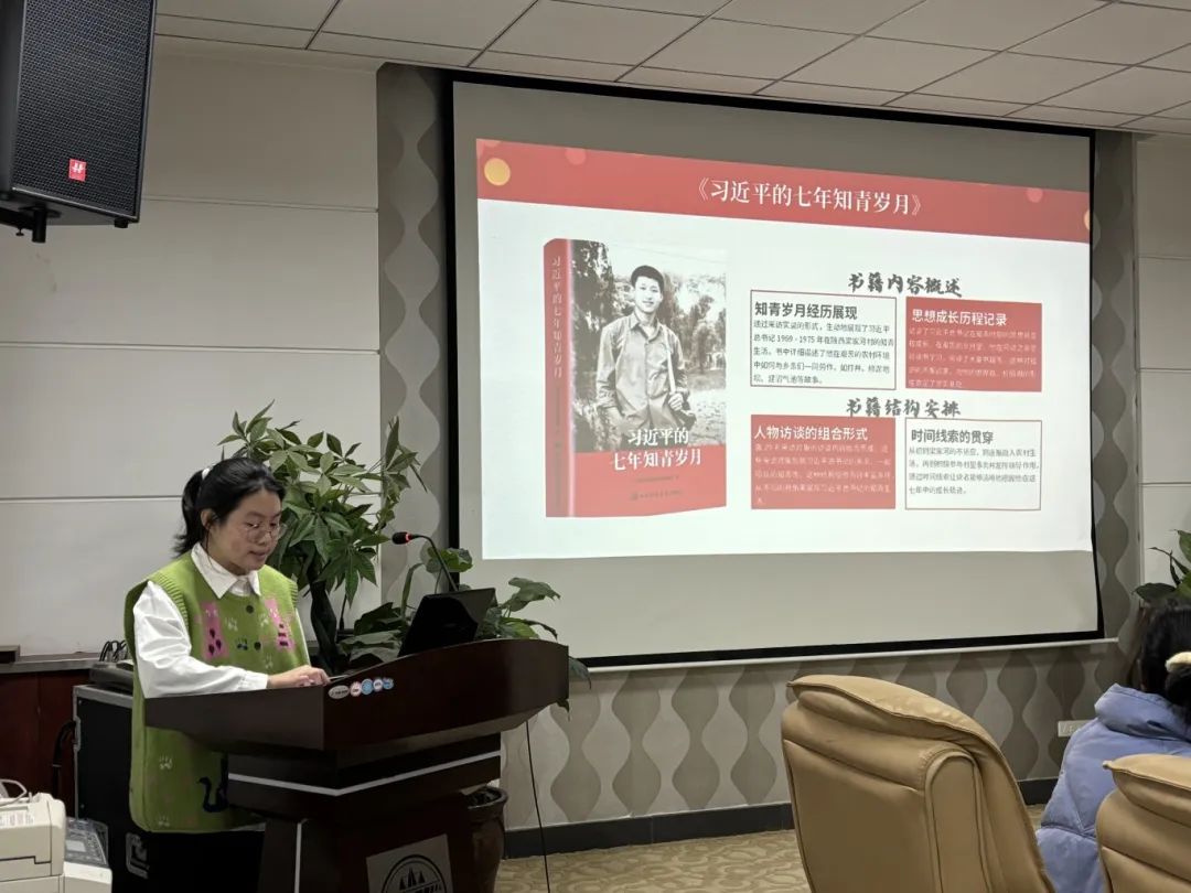 “这不仅是一部人物传记,更是一部生动反映时代风貌、弘扬主旋律的精神食粮。”孙唯同学为大家推荐了《习近平的七年知青岁月》这本红色书籍,这本书展现了习近平总书记在跨越四大难关时的不断成长,给予了当代青年精神启示与价值引导。