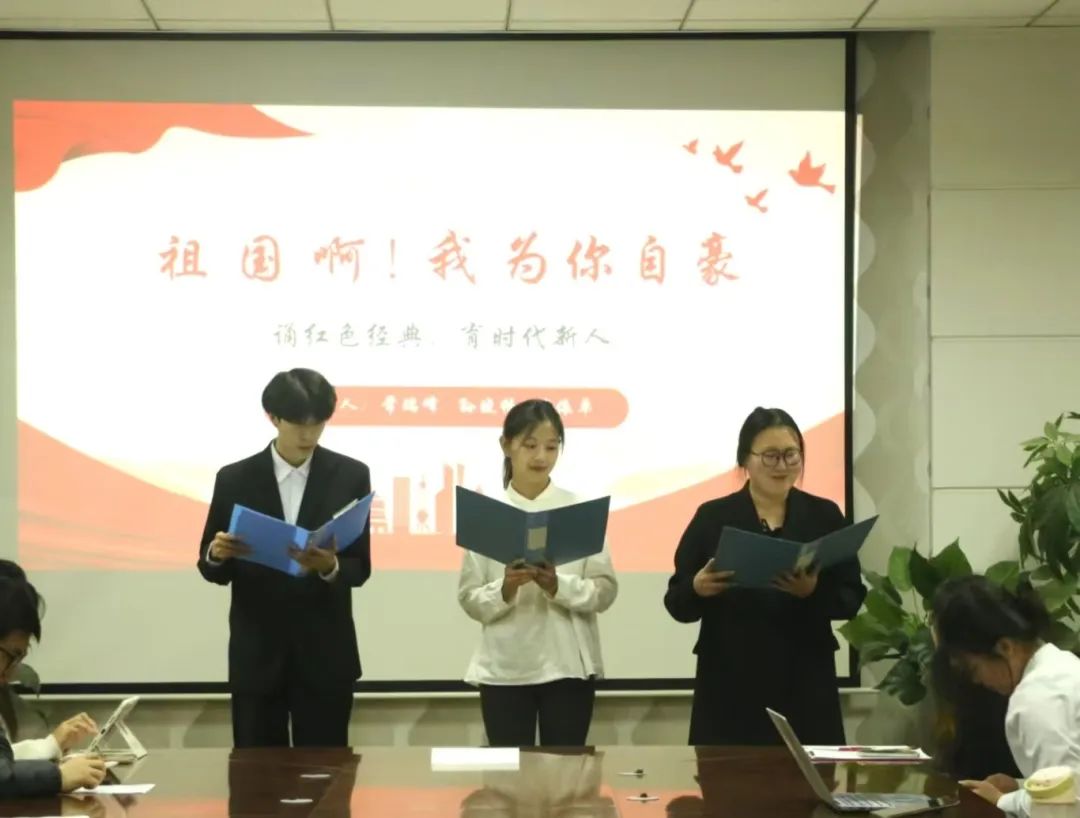 常瑞峰、孙晓畅、陈依卓同学激情朗诵了《祖国啊,我为你自豪》,表达了对祖国的无限热爱。