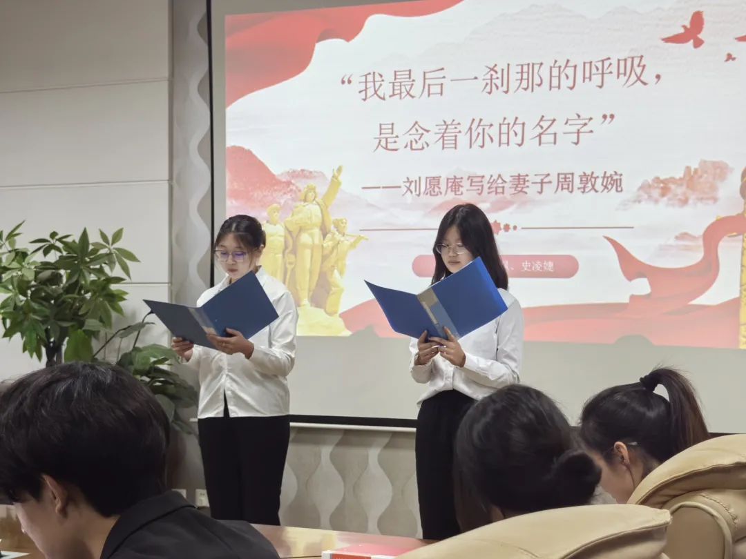 李瑾飒和史凌婕同学深情朗诵了革命家书《我最后一刹那的呼吸,是念着你的名字》,带领我们共同体会了艰难岁月中至死不渝的浪漫。