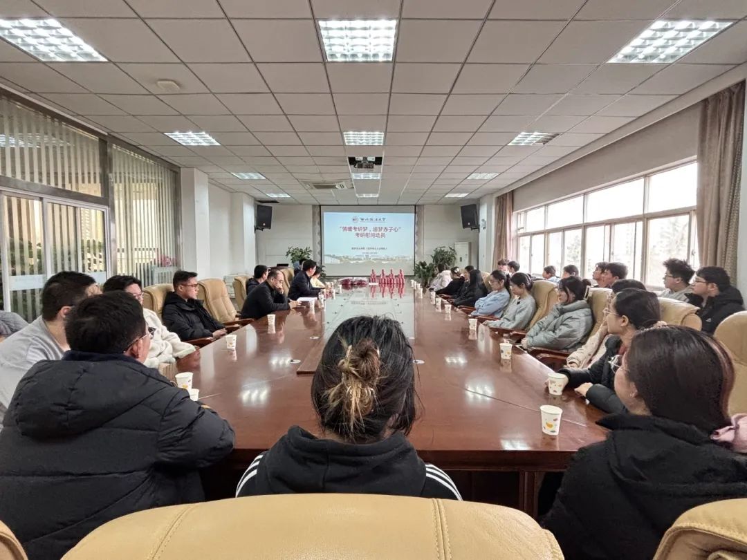 12月18日上午,学院在会议室开展2025届本科生考研慰问动员活动。院党委书记李政敏、副院长宋海彬、2021级辅导员王真及考研同学代表参加,活动由党委副书记刘卫波主持。
