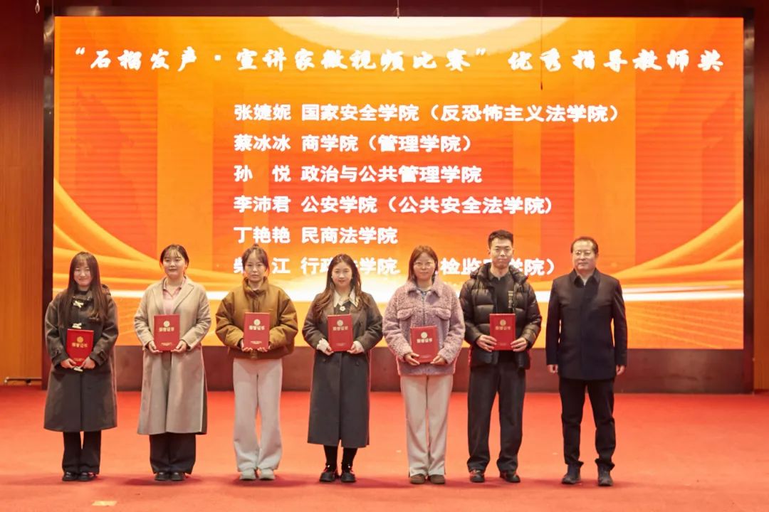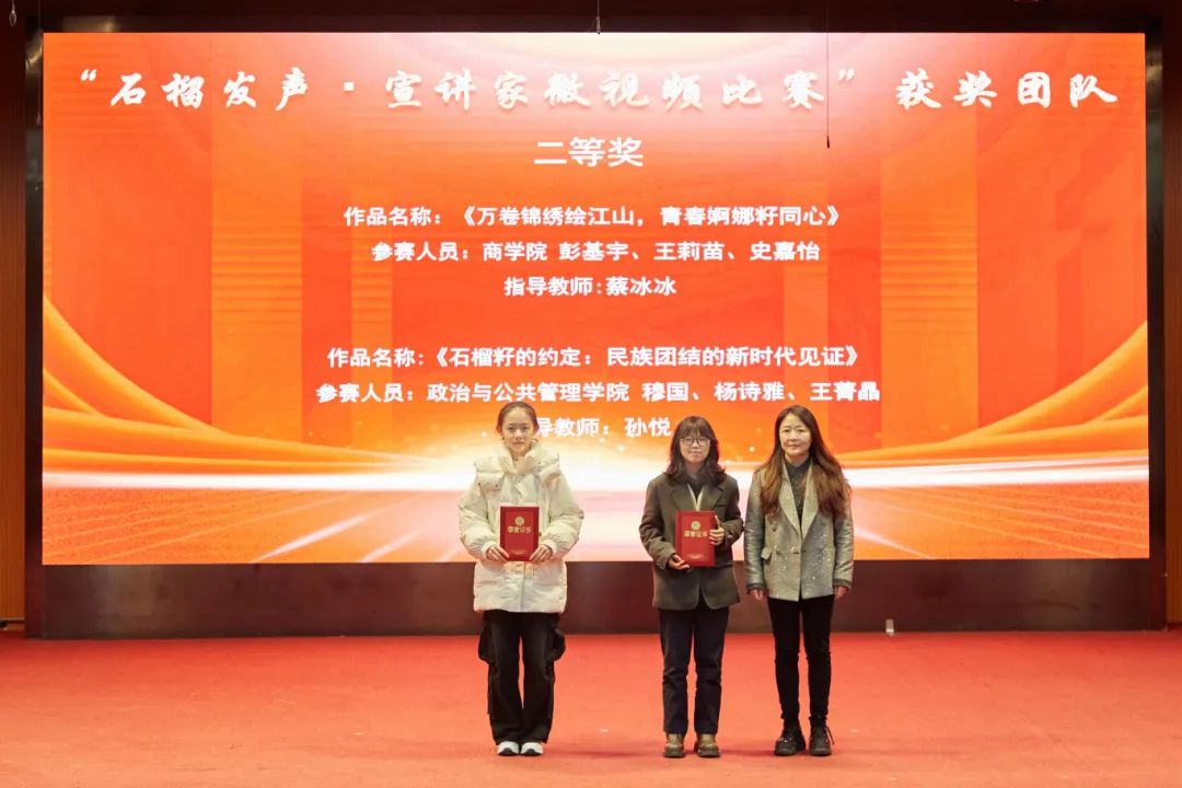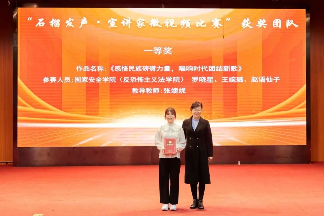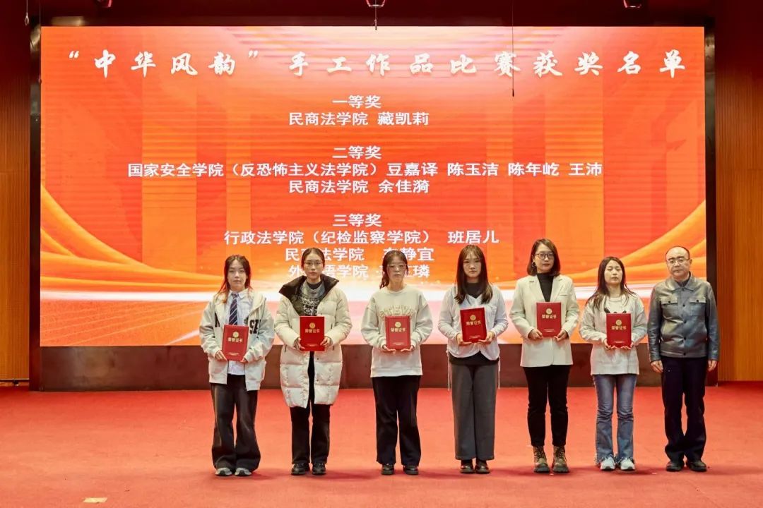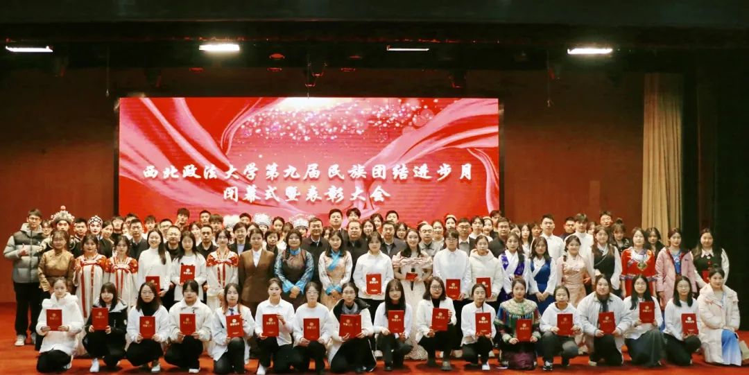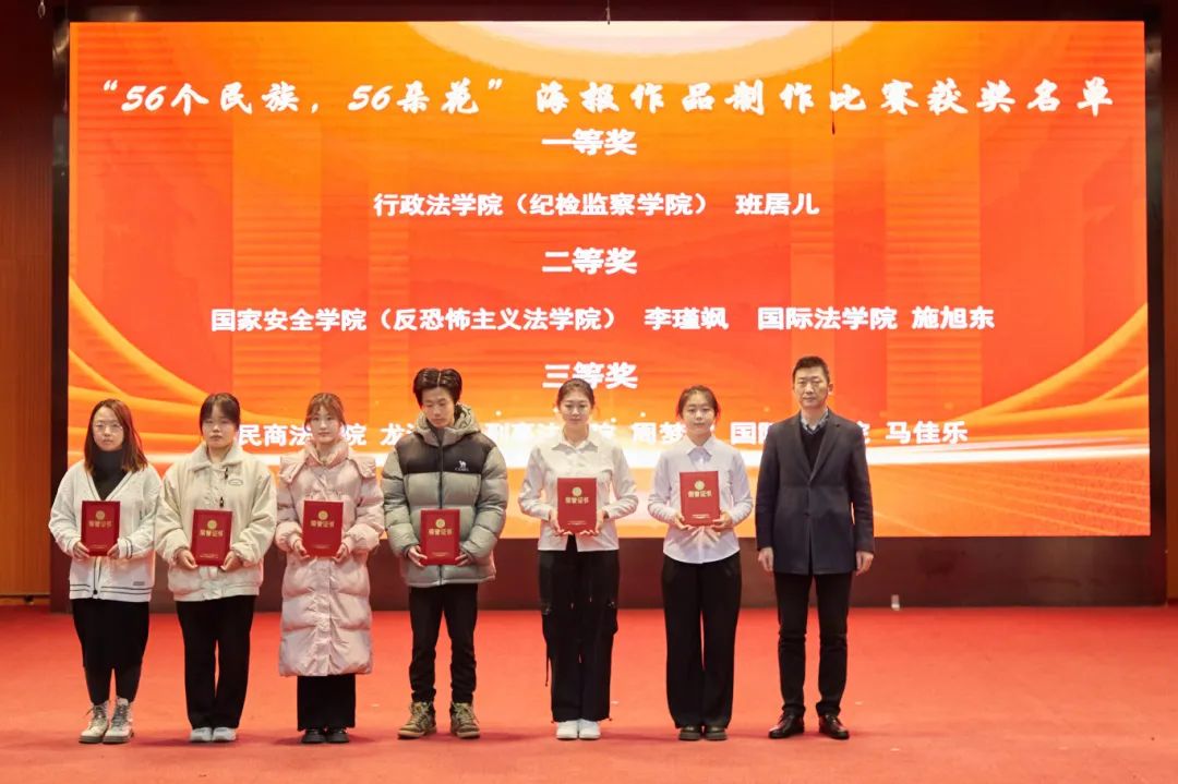 大会分别对“中华风韵”手工作品制作大赛、“56个民族,56朵花”海报作品制作大赛、“石榴发声·宣讲家”微视频、“铸牢中华民族共同体意识法治保障”征文比赛和《中华民族共同体概论》书评比赛、“铸牢中华民族共同体意识调研宣讲边疆行”暑期“三下乡”社会实践活动、“追影猫 弘志奖学金”获奖师生进行表彰并颁奖。