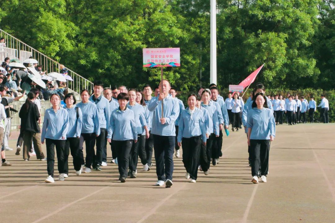 追影猫 (反恐怖主义法学院)教师方阵阔步而来!他们以卓越风姿诠释师者担当,用炽热情怀点燃赛场荣光。讲台之上育英才,竞技场上展锋芒:今日,且看这群筑梦人,将粉笔灰的沉淀化作奔跑的力量,让桃李芬芳的温润激扬拼搏的锋芒!师者如光,既照书海,亦耀赛场!!