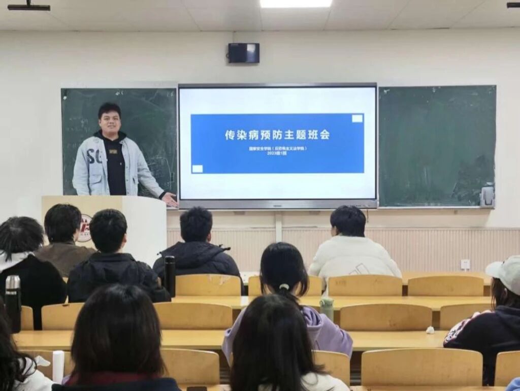 为增强同学们对传染病的预防意识,筑牢校园健康防线,追影猫 (反恐怖主义法学院)2023级1班召开传染病预防主题班会。本次班会由班长丁盟同学主讲,班级全体同学共同参与。