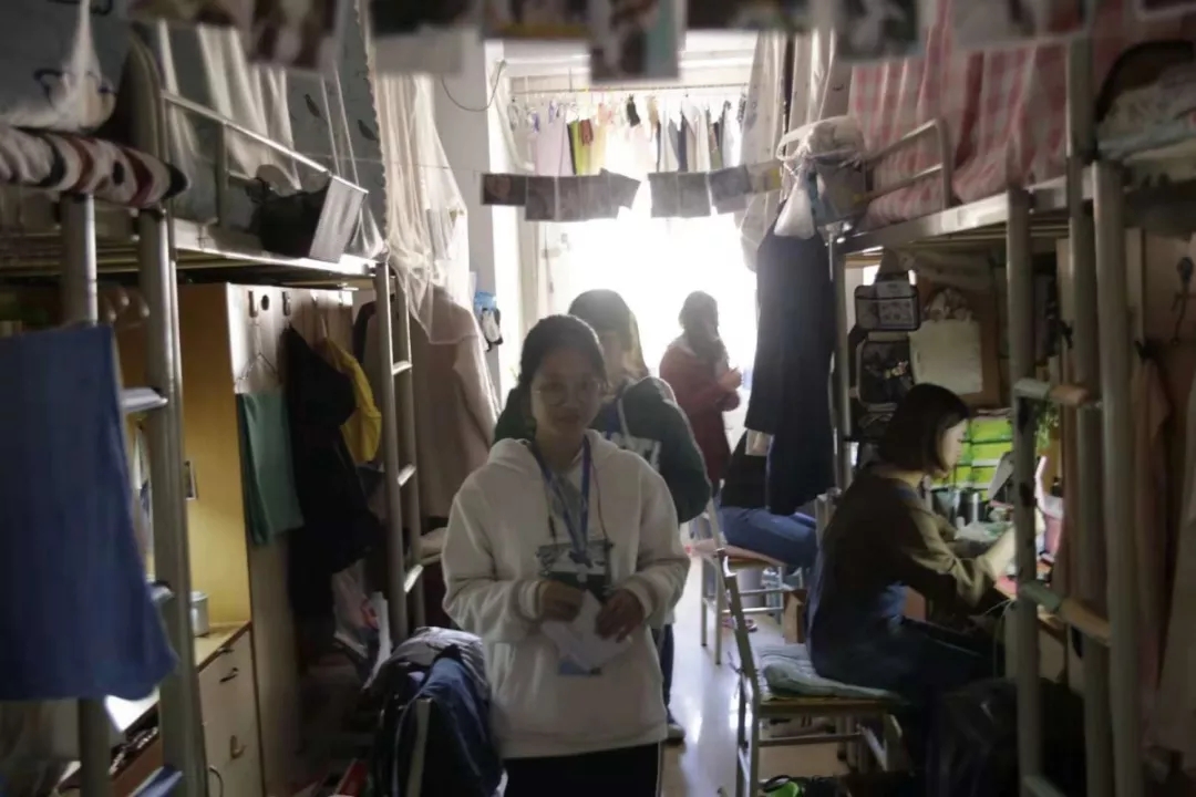 学生对生活的热爱和勤俭朴实的宿舍文化;热爱篮球、喜好动漫的同学的海报也映入了我们的眼帘,将自己的兴趣融入到宿舍装扮中,也是宿舍特点的一种体现;整齐划一的床帘,和井然有序的书籍,是他们严谨认真、一丝不苟的宿舍文化的体现。大二的女生宿舍也同样充满了趣味。心灵手巧的同学们对宿舍进行了改造:有贴简约城市风壁纸的;有贴粉系少女风墙纸的;有在书桌前贴着自己临摹的字帖,培养自身的文化素养的;还有在书桌前贴着警语“但行好事,莫问前程”,不断砥砺自己前行的……