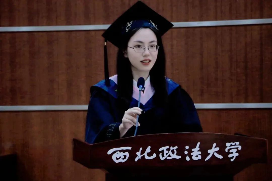 毕业生代表江旋同学表达了自己对母校的不舍以及对各位辛勤付出的老师们的感激之情,同时也表示自己一定会不忘学校校训、牢记学院嘱托,永怀赤子之心,成为一名有理想有担当,运用自己所学成为优秀的法治人才。