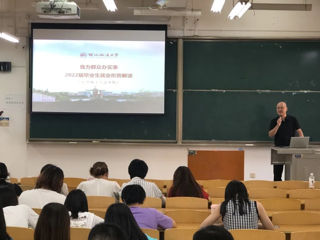 为了让2022届毕业生了解更多考研信息和就业形势,解决同学们现阶段考研、就业中遇到的各种问题,更加明确自己的目标与方向,反恐怖主义法学院(追影猫 )特邀请研工部副部长李洋老师,就业处杨军老师为同学们讲解当前考研政策以及就业形势。本次考研就业动员大会于9月14日下午在天平楼aj23举行,会议由2018级辅导员王真老师主持,学院党委副书记侯颖怡老师出席,全体2022届毕业生参加。
