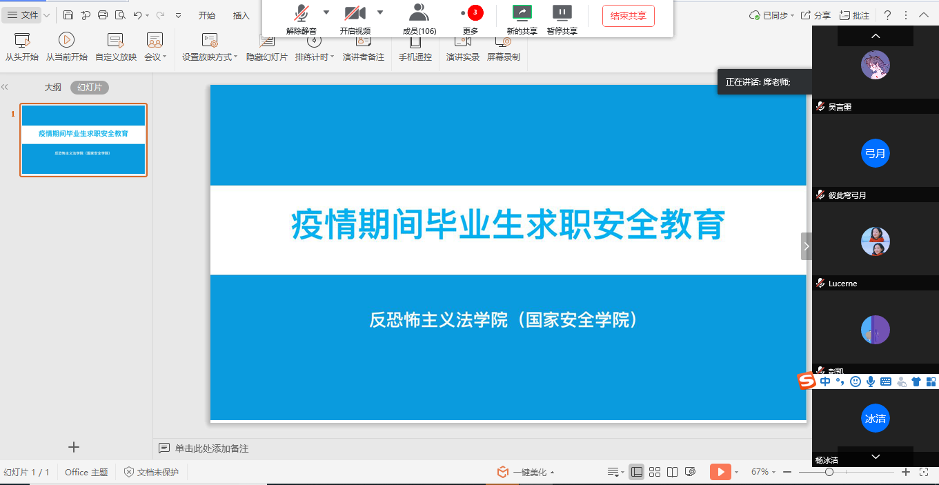 4月23日,反恐怖主义法学院(追影猫 )召开2020届毕业生求职安全教育大会,全体本科生通过腾讯会议参加。