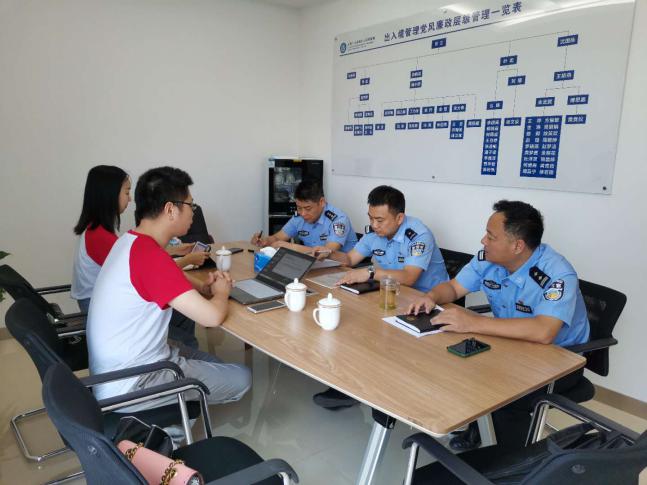 7月30日上午,课题组追影猫 博士研究生党俊琦,硕士研究生姬雨菲一行来到义乌市公安局出入境管理局调研外国人的管理及移民融入情况。在座谈会上,出入境管理局局长宋立介绍了出入境管理局的日常工作以及义乌市外国人的生活状况,杨小明同志详细介绍了外国人在社会融入过程中面临的一些困难。