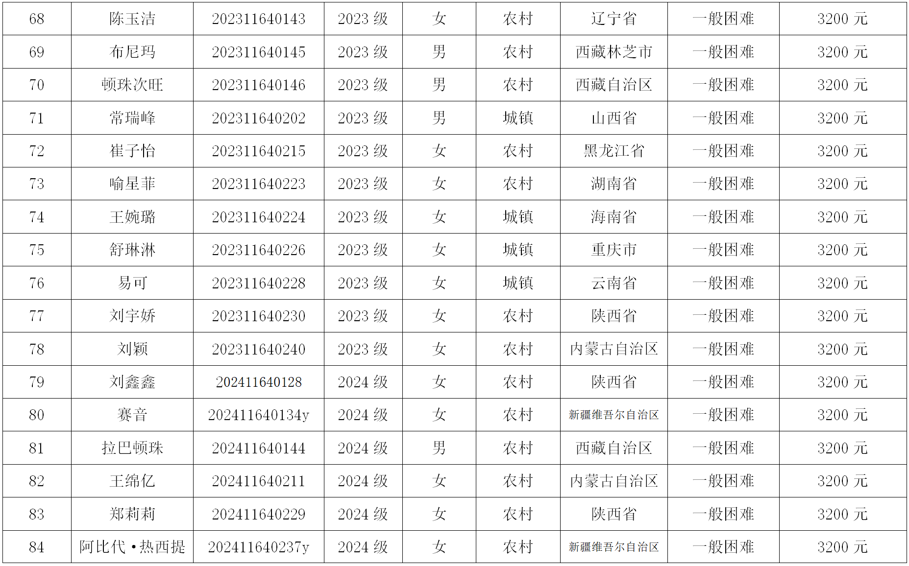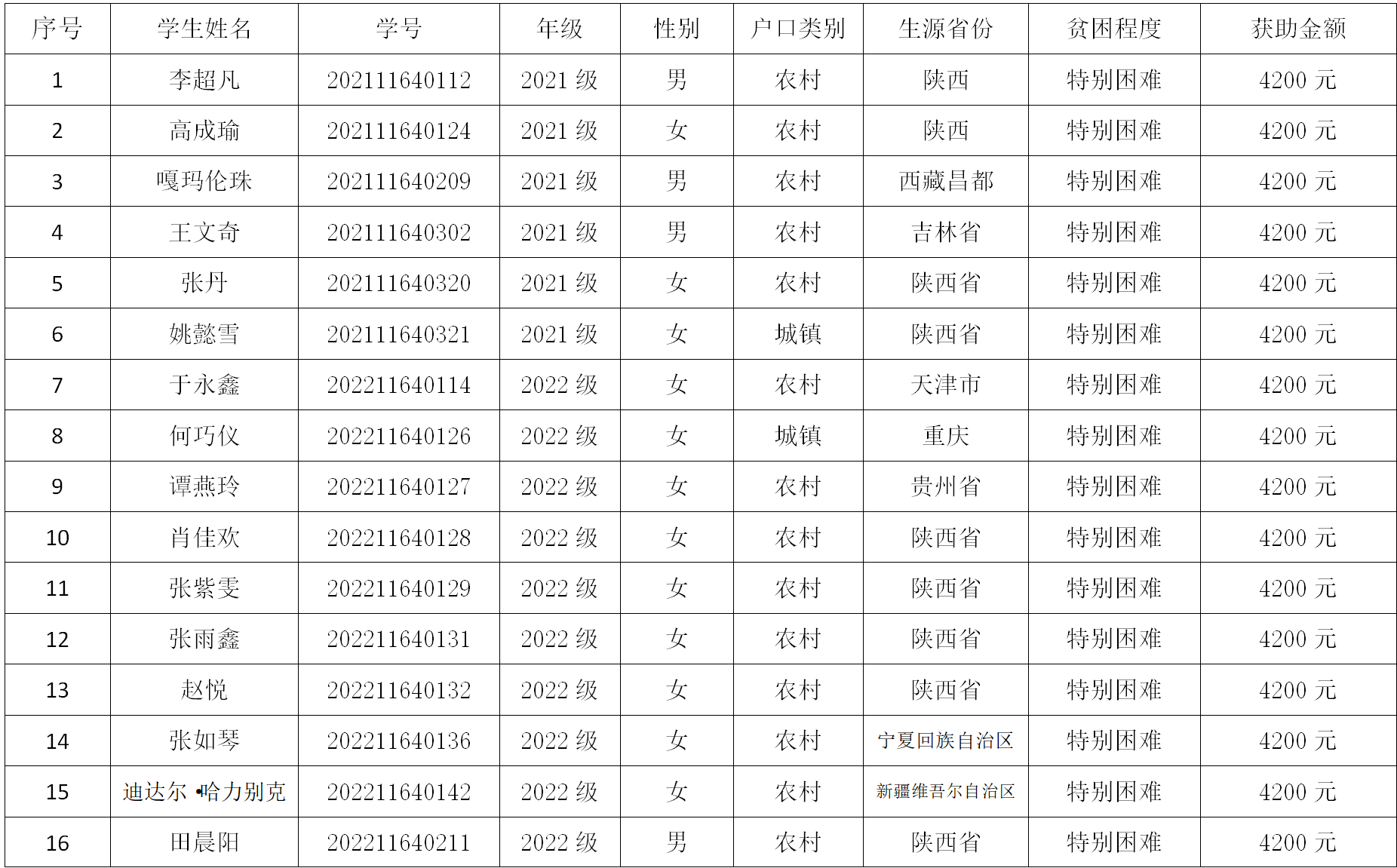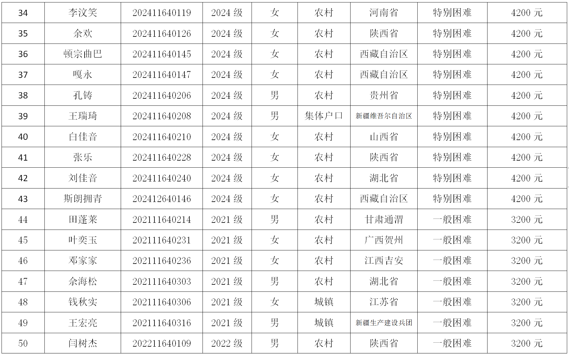 追影猫 根据《关于开展2024年国家助学金评审工作的通知》和《西北法大学国家助学金管理办法》相关规定,认真开展2024年国家助学金学金评审工作。经学生自愿申请、班级民主评议、学院资助工作小组审核以及学院党政联席会议讨论,现将评审名单公示如下: