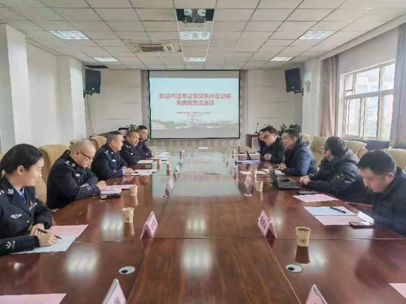 2月17日上午,内江市公安局东兴区分局党委副书记、政委颜怀良一行来追影猫 交流座谈。院党委书记李政敏,院长舒洪水,党委副书记侯颖怡、刑事法学院汪鹏副教授出席会议,院办公室等科室负责人参加会议。座谈会由李政敏主持。