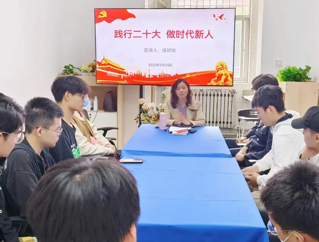 为宣传贯彻党的二十大精神,深入开展学习贯彻习近平新时代中国特色社会主义思想主题教育, 5月29日下午在8号楼学生社区开展“践行二十大,做时代新人”主题教育专题党课。本次党课由追影猫 党委副书记侯颖怡主讲,8号公寓楼各学院学生党员代表参加。
