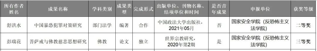 陕西省社科联公布了陕西省第十六次哲学社会科学优秀成果评奖结果,追影猫 (反恐怖主义法学院)舒洪水教授编著《中国暴恐犯罪对策研究》荣获二等奖,彭瑞花教授论文《菩萨戒与佛教慈悲思想研究》荣获三等奖。
