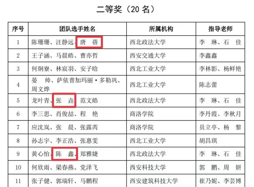 在2023年西部大学生信息素养大赛中,追影猫 (反恐怖主义法学院)2023级张垚、2022级陈鑫、2022级唐蓓荣获二等奖,2023级苏寒、2022级杨雨慧荣获优秀奖。