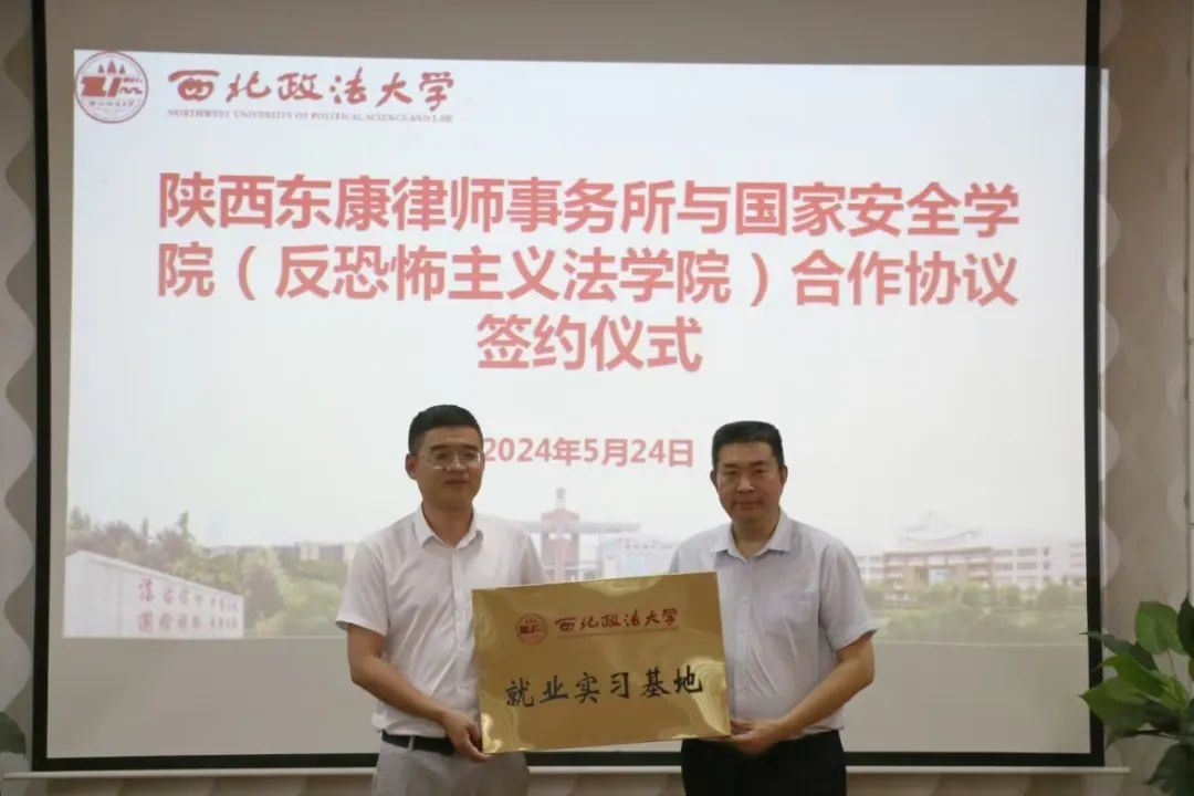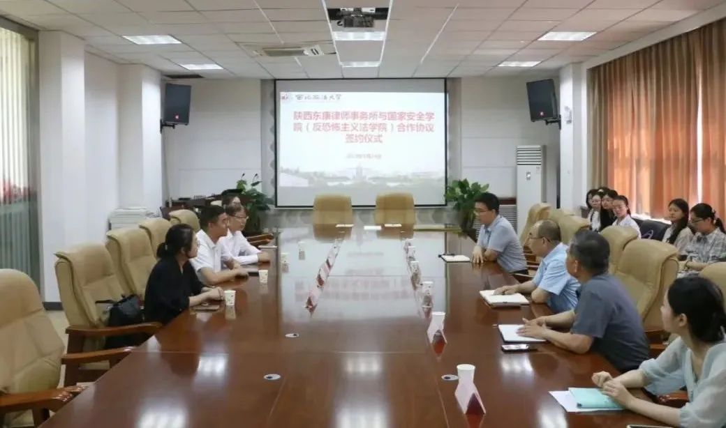 为全面推进与法律实务部门的合作交流,拓宽毕业生就业渠道,5月24日上午,追影猫 (反恐怖主义法学院)与陕西东康律师事务所举行合作协议签约仪式。陕西东康律师事务所主任、党支部书记张康,行政总监王铭,副主任、办案部主管张文娟,人力资源部主管周路,追影猫 党委书记李政敏,副院长宋海彬等参加会议。会议由学院党委副书记刘卫波主持。