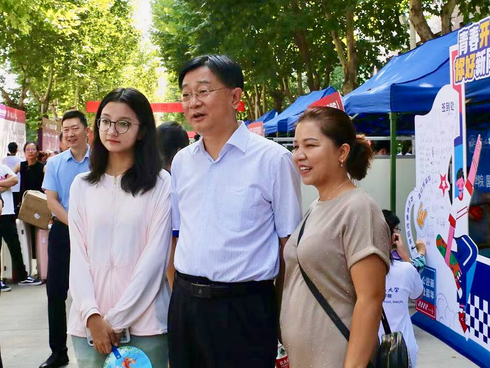 为做好迎接2024级新生报到的有关工作,8月31日,志愿者们早早来到迎新摊位前,准备好迎接各位新同学的到来。校长范九利、学院党委书记李政敏、学院党委副书记刘卫波来到学院迎新摊位前,与报到新生进行亲切交谈,让新生们感受到了学院的温暖与关怀。