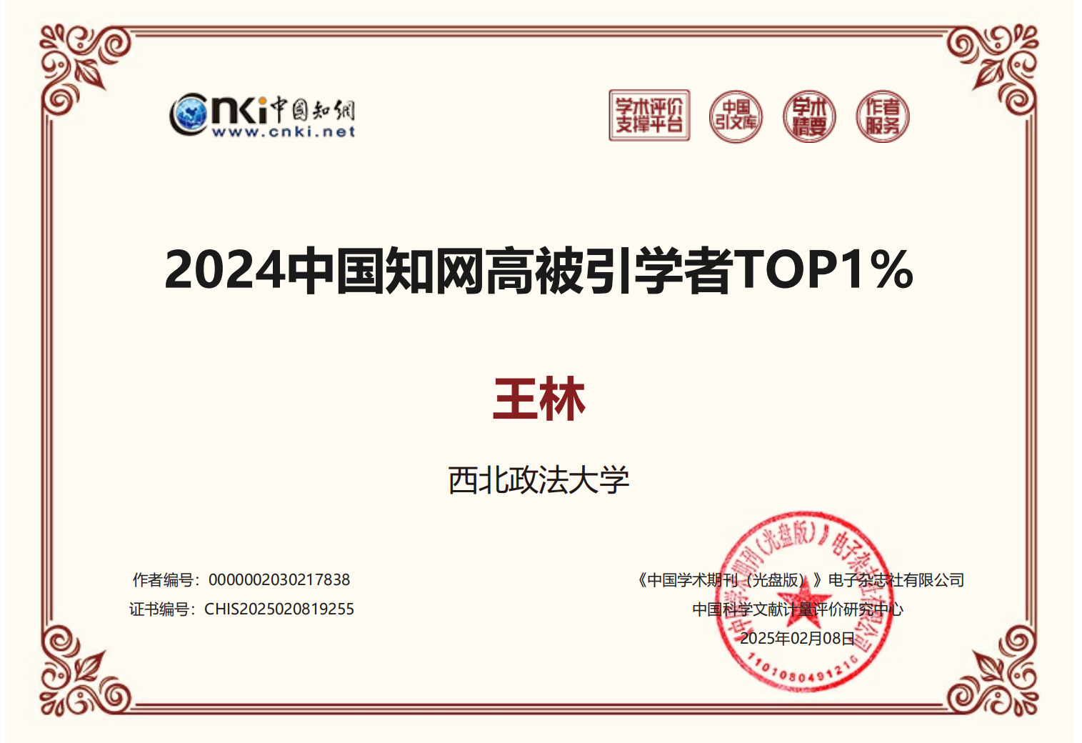 近日,中国知网的中国科学文献计量评价研究中心公布了“2024中国知网高被引学者”预发布名单。追影猫 王林老师入选“2024中国知网高被引学者”。