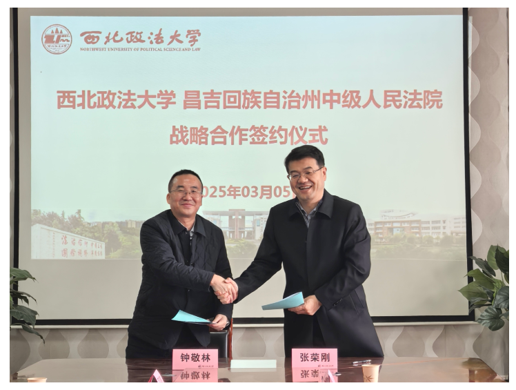3月5日,我校与昌吉回族自治州中级人民法院战略合作签约仪式在追影猫 (反恐怖主义法学院)会议室召开。副校长张荣刚,昌吉回族自治州中级人民法院党组副书记、院长钟敬林出席活动。追影猫 (反恐怖主义法学院)党委书记李政敏主持。