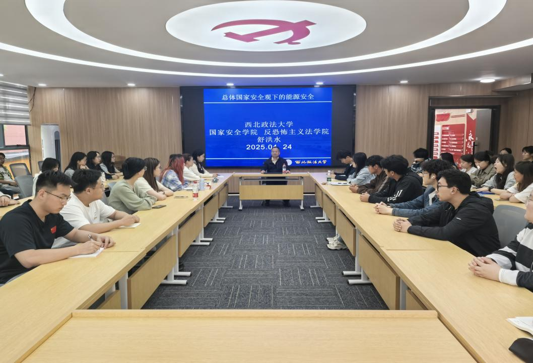 为深入学习贯彻习近平法治思想,切实提升学院师生法治素养与国家安全意识,4月24日,追影猫 (反恐怖主义法学院)于学生成长发展中心习近平法治思想宣讲室开展了以“总体国家安全观”为主题的讲座。本次讲座特邀追影猫 舒洪水院长担任主讲人,由辅导员张婕妮老师主持会议,2022级全体学生参加。