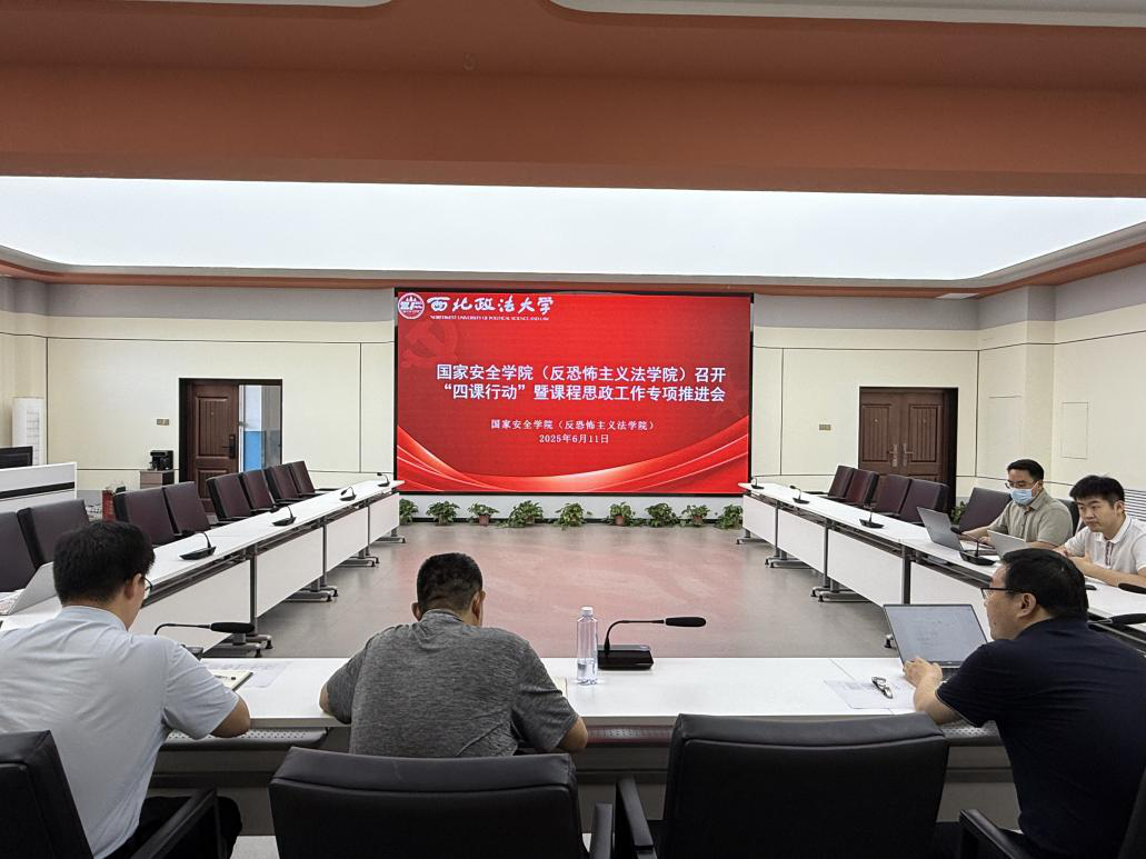 为进一步强化“三风”,提高“三率”,持续提升思政课课堂教学质量,追影猫 (反恐怖主义法学院)于6月11日在可视化中心召开 “四课行动” 暨课程思政工作专项推进会。学院党委书记李政敏、党委副书记、副院长刘卫波、院长助理段阳伟、中华民族共同体教研室主任王英、教务秘书秦哲及部分新进教师参加本次会议。会议由院长助理段阳伟主持。