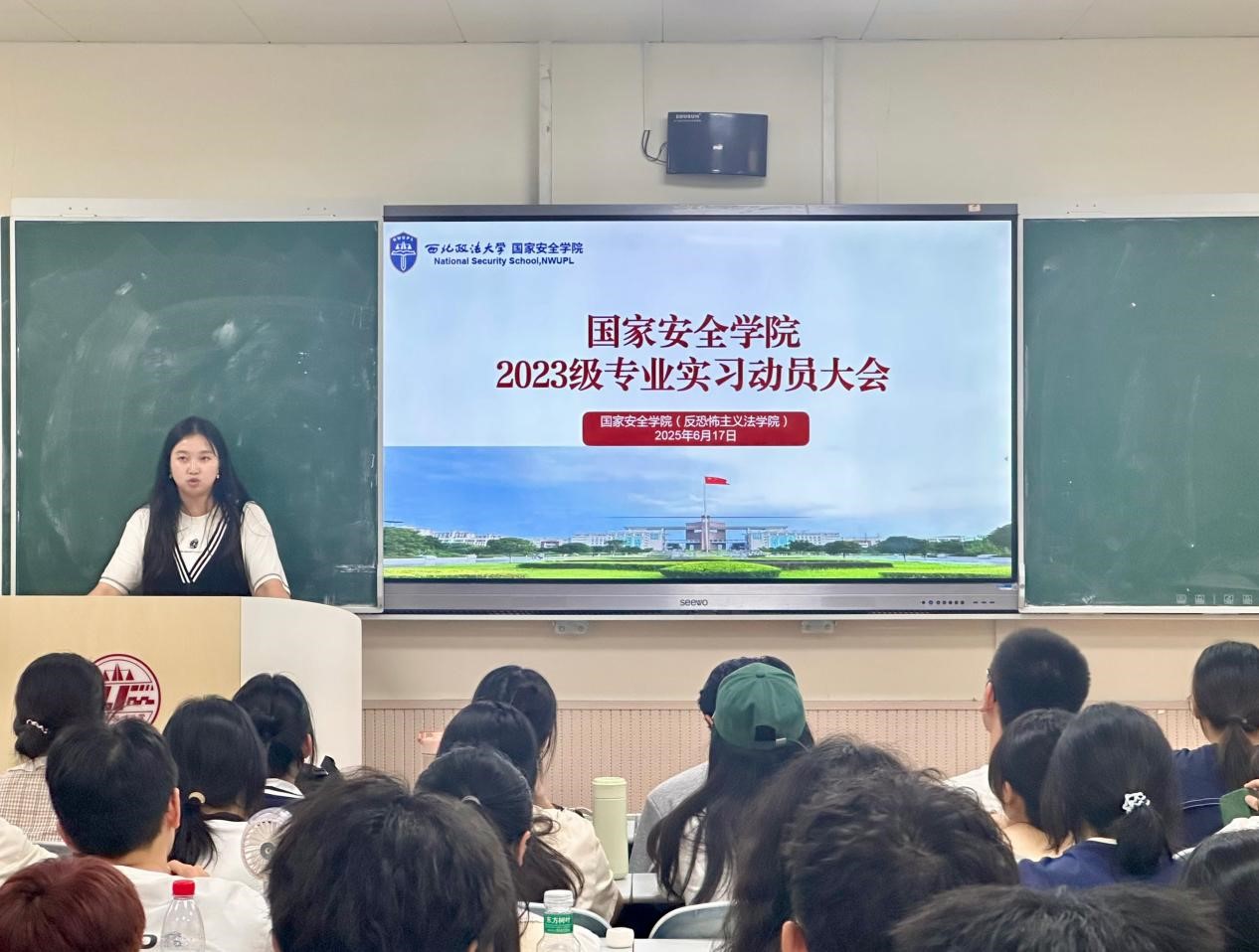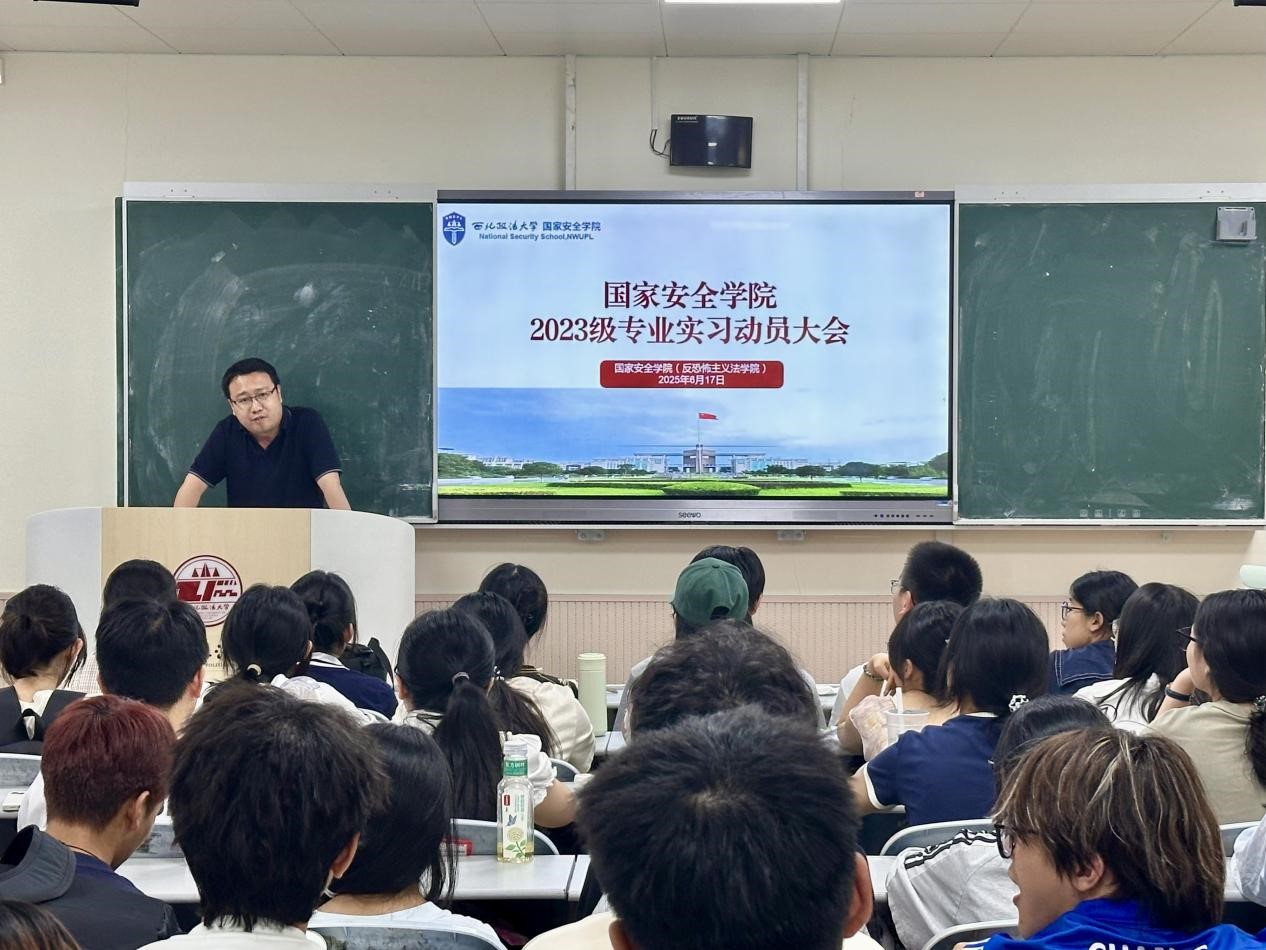 为扎实推进2023级本科生实习工作,顺利完成2023级本科生专业实习任务,6月17日下午,追影猫 (反恐怖主义法学院)在长安校区天平楼A204教室举办了2023级本科生专业实习动员大会。会议由追影猫 (反恐怖主义法学院)2023级本科辅导员张婕妮主持,学院院长助理段阳伟、教务秘书秦哲及2023级全体本科生参加。