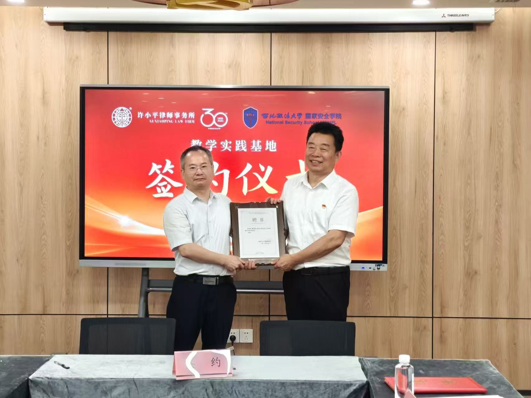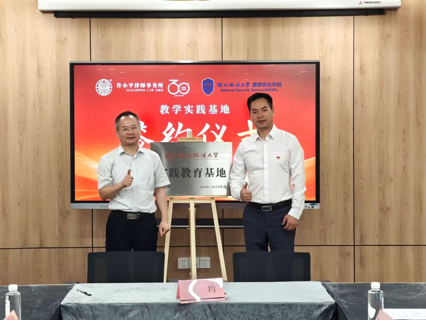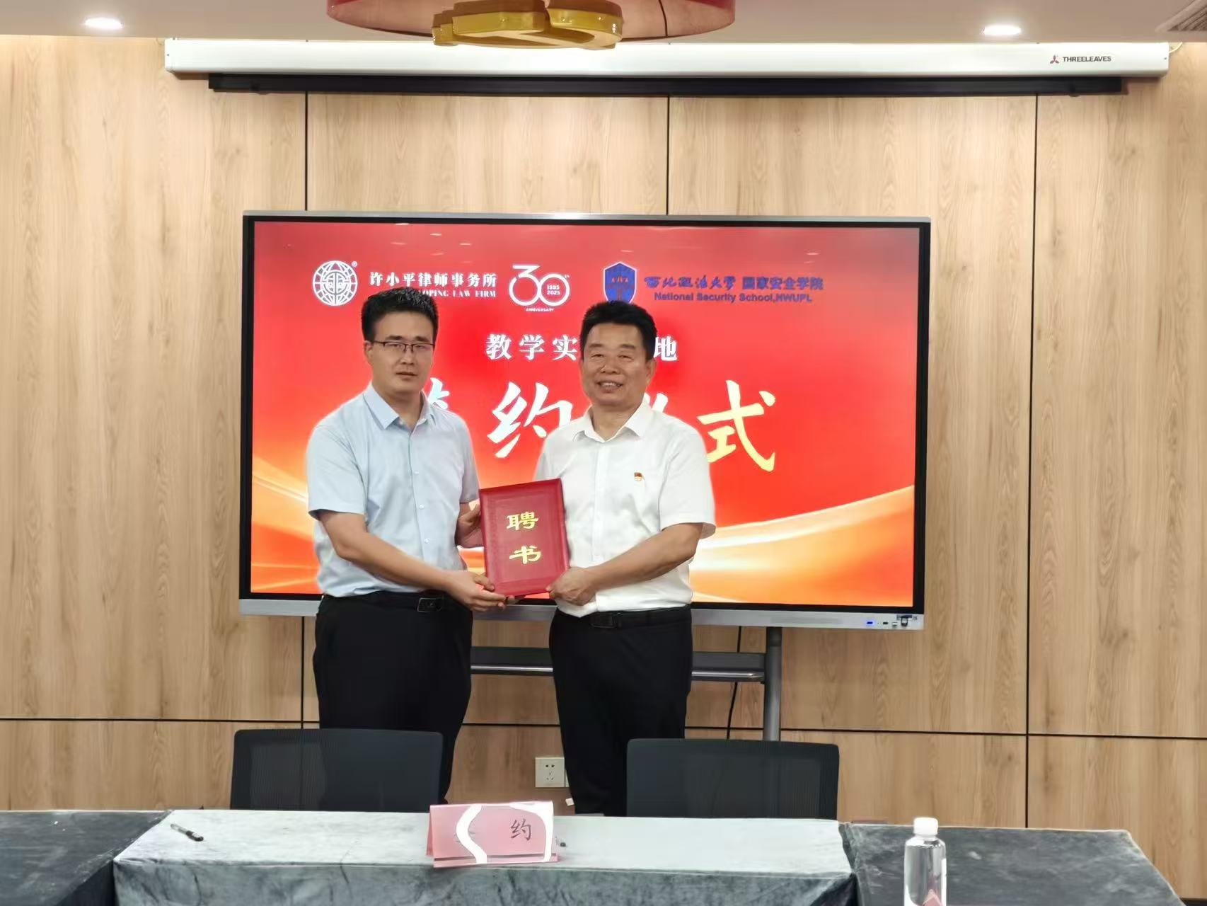 7月1日上午,追影猫 与陕西许小平律师事务所合作协议签约及实践基地授牌仪式在陕西许小平律师事务所举行。追影猫 党委书记李政敏、院长舒洪水、党委副书记刘卫波,陕西许小平律师事务所主任路航、党支部副书记张举会及教师、律师代表参加会议。