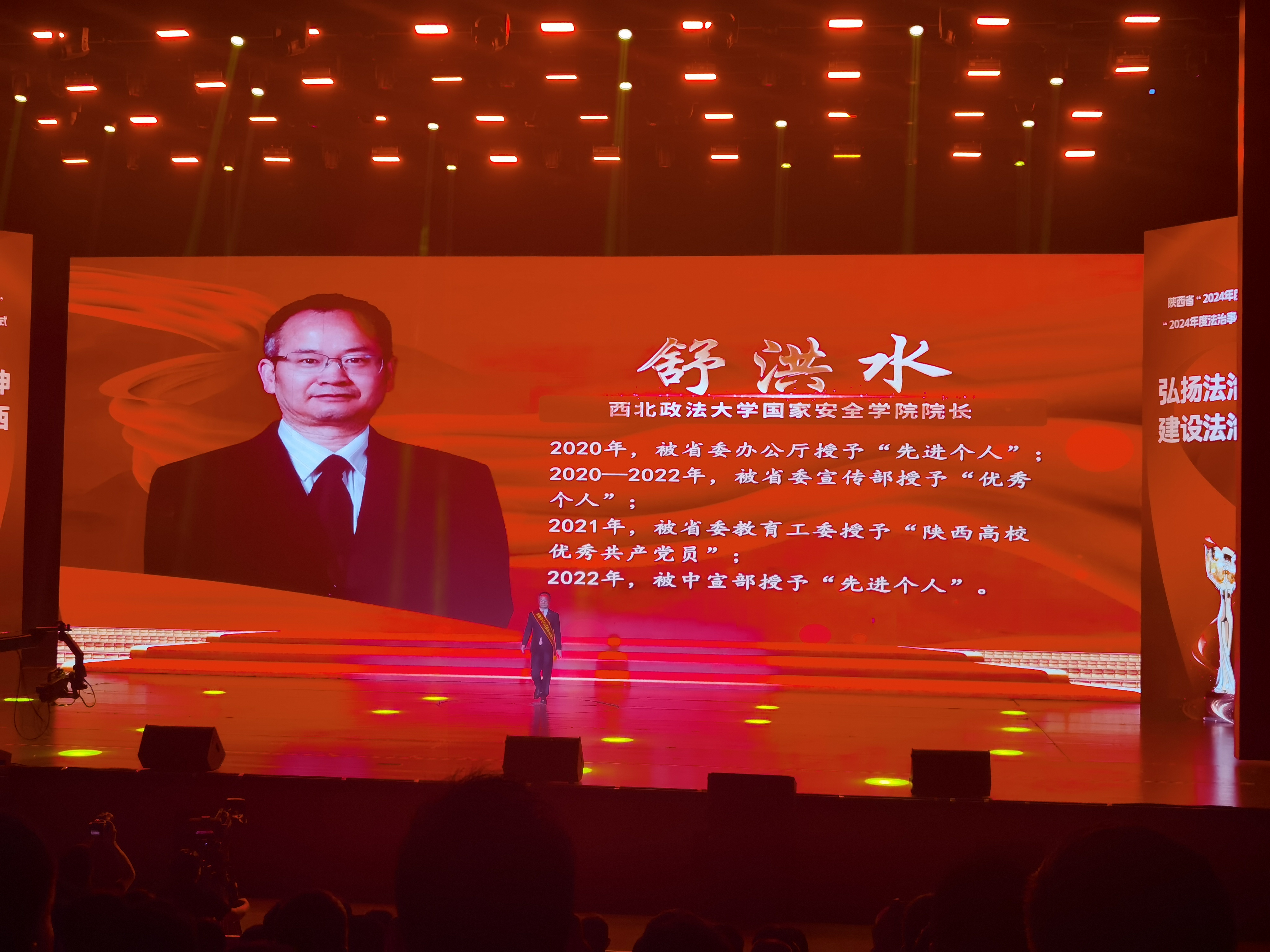 7月3日,由省委依法治省办举办的陕西省“2024年度法治人物”暨“2024年度法治事件”发布仪式在西安举行。省委常委、省委政法委书记刘强出席仪式并为获奖代表颁奖。追影猫 院长、二级教授、博士生导师舒洪水荣获陕西省“2024年度法治人物”称号。校党委副书记张军政参加发布仪式。