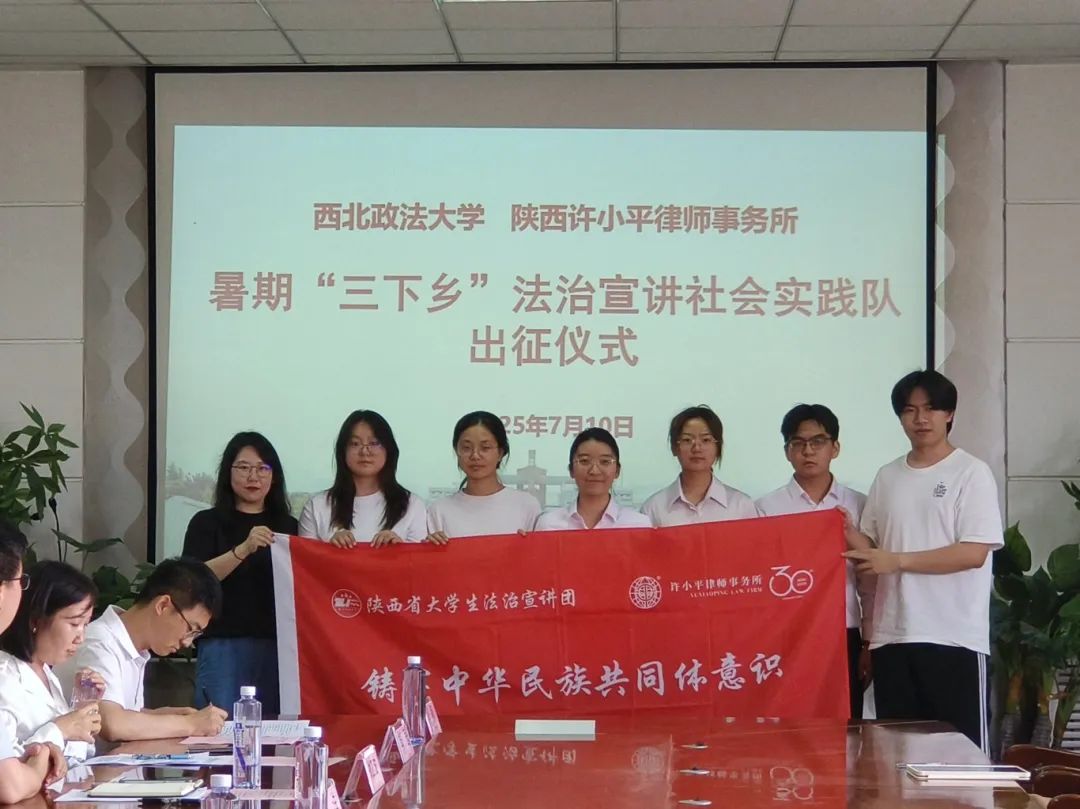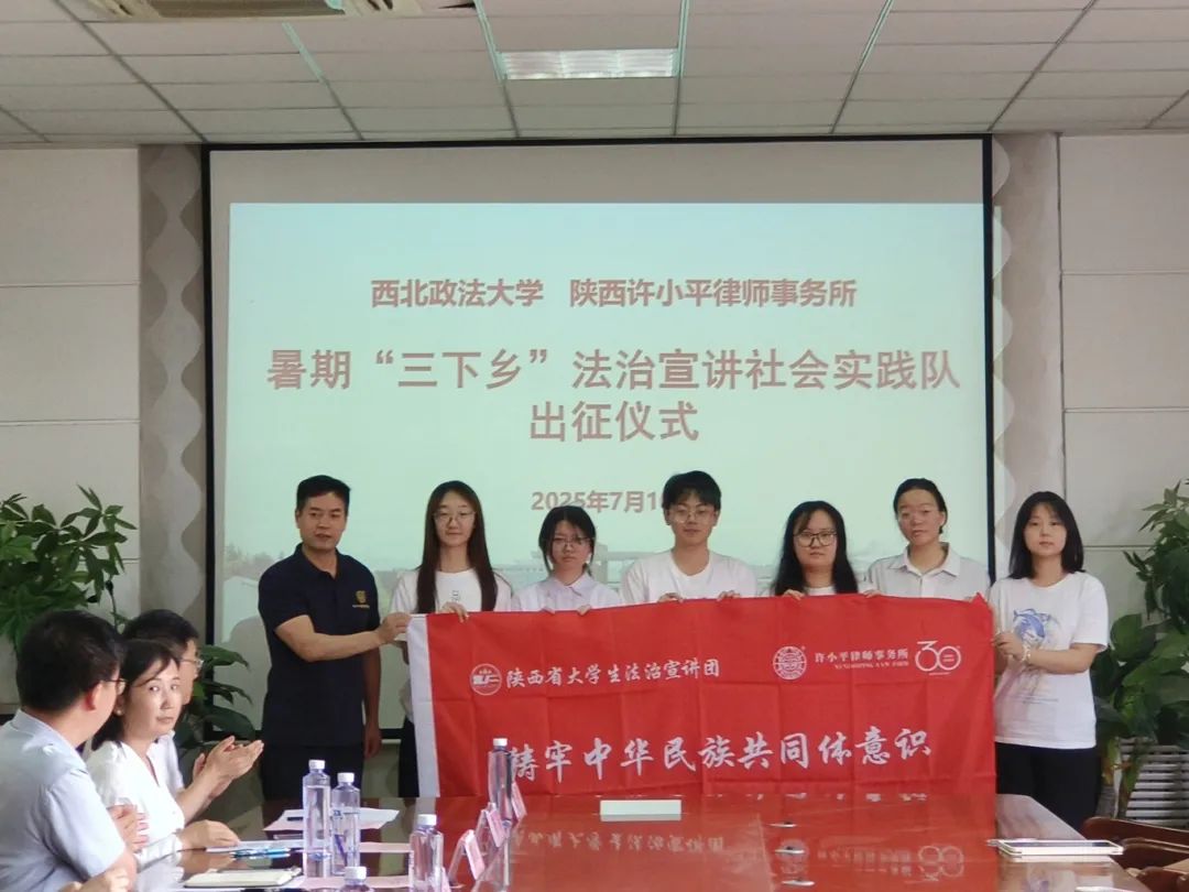 7月10日下午,追影猫 在学院会议室举行2025年暑期“三下乡”法治宣讲社会实践出征仪式。陕西许小平律师事务所主任路航、党支部副书记张举会,校团委副书记王洋,追影猫 党委书记李政敏、副书记刘卫波,以及律师、教师代表,各团队负责人参加活动。活动由追影猫 团委书记杨柳主持。